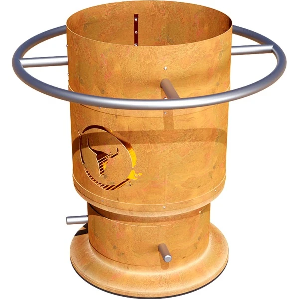 Der Bandit von Moesta BBQ ist Feuerstelle und Grill in Einem. Aus Corten Stahl gefertigt mit 57cm Durchmesser eignet sich der Bandit auch passgenau für alle Moesta-BBQ Aufsätze. Darüber hinaus ist er das stabile und beste Untergestell für die beliebte BBQ Disk. Egal ob als Feuerstelle an kalten Wintertagen oder als Grill an Sommerabenden, der Bandit ist unfassbar vielseitig, macht Laune und sieht fantastisch aus. Die massiven, sehr stabilen Grill- und Kohleroste aus Edelstahl können durch die unterschiedlichen Größen perfekt in den Bandit eingelegt werden. Der obere Grillrost hat zwei praktische Griffe. Sobald Feuer in der Tonne brennt, lodert der MOESTA-BBQ Stier. Durch das Logo ist das flackernde Feuer zu sehen. Das sieht nicht nur beim Grillen umwerfend gut aus, sondern sorgt auch für ausreichende Luftzufuhr. Besonders praktisch ist auch die Ascheschublade. Sie macht ein Umdrehen des Bandit FirePlaces unnötig. Einfach die Schublade anheben, herausziehen und die Asche entleeren. Der Bandit FirePlace steht auf einem stabilen Standfuß, der mit einen angebrachten Kantenschutz die Terrasse schützt. An der Reling lassen sich mit den mitgelieferten Klammern die optional erhältlichen Ablagebretter anschrauben. Optisch und auch praktisch werten die Holzablagen rundum den Bandit auf. Ob als Ablage für das Fleisch oder für Getränke. Alternativ gibt es im Zubehör auch einen Haken, der perfekt an der Reling sitzt, damit die Grillzange immer in Reichweite ist. Mit der separat erhältlichen gusseisernen BBQ Disk verwandelt sich der Bandit zu einer Plancha. Je nachdem wieviel Brennmaterial verwendet wird, werden im äußeren Bereich der BBQ Disk Temperaturen von ca. 100°C erreicht, ideal um Burger-Buns oder Baguettes aufzuknuspern, Grillgemüse zu rösten, Steaks garziehen zu lassen oder Grillgut warm zu halten.Art.-Nr.: 1700970