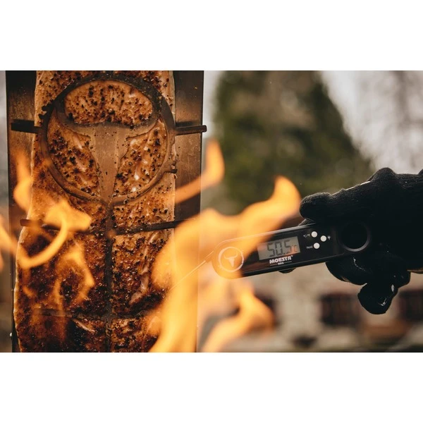 Das Moesta FlameBoard ist ein XXL Edelstahl-Flammlachsbrett. Es ist durch den hochwertigen Edelstahl nicht nur einfach zu handhaben, sondern auch unbegrenzt oft verwendbar. Das Moesta FlameBoard lässt sich auf dem Moesta Bandit FirePlace, Kugelgrills und Feuertonnen montieren, leicht reinigen und immer wieder verwenden. Mit der 4-fachen Neigungswinkelverstellung auf beiden Seiten des Flammlachsbretts kann man jederzeit die optimale Hitze für den Lachs einstellen. Während der Zubereitung kann man es auch um 180° wenden und bekommt ein gleichmäßiges Garergebnis. Ein Lachs gegrillt mit Holz über Feuer überzeugt jeden Feinschmecker. Mit den Maßen von 60cm x 19cm ist das Flammlachsbrett von der Größe so gewählt, dass auch ganze Lachsfilets oder Lachshälften auf das FlameBoard passen. Die Materialqualität von Halterung und Brett ist hervorragend und langlebig, das FlameBoard ist spülmaschinenfest und unverwüstlich.Art.-Nr.: 1862281