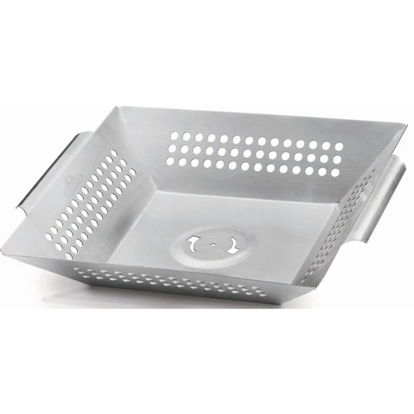 Grillhähnchen wie vom Profi und dazu noch saftiges Beilagengemüse gelingen mit dem multifunktionalen Geflügelhalter und Gemüsekorb von Napoleon. Am abnehmbaren Aufsatz findet das Grillhähnchen seinen Platz, darunter, beträufelt von den intensiven Hähnchensäften und Aromen, wird das Gemüse schonend gegart. Dank seiner eckigen Grundform nutzt der Edelstahl-Geflügelhalter samt Gemüsekorb die Grillfläche optimal aus. An den seitlichen Griffen lässt er sich ganz einfach und sauber anfassen, zum Beispiel zum Verschieben aus der direkten in die indirekte Grillzone. Der praktische Grillhelfer ist aus Edelstahl gefertigt und für die Spülmaschine geeignet. Art.-Nr.: 1404553