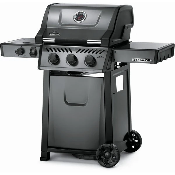 Der Napoleon Freestyle 365 SB Graphit ist ein kompakter Gasgrill mit Seitenkocher, erstklassigen Funktionen und unschlagbarem Preis-Leistungsverhältnis. Der Flammenstrahl des JETFIRE Zündsystems zündet die Hauptbrenner schnell, einfach und zuverlässig. Die Iconic Wave-Grillroste aus Gusseisen und die emaillierten Flammenschutzbleche ermöglichen eine gleichmäßige Hitze-Verteilung und ein perfektes Anbraten. Die Porzellanbeschichtung schützt sie dabei vor Rost. Der langlebige Feuerkasten aus Aluminiumguss reflektiert die Hitze des Grills und erzeugt so eine konvektive, backofenähnliche Umgebung und hervorragende Grillergebnisse. Die Temperatur der drei Edelstahlbrenner kann mit den ergonomischen Bedienknöpfen präzise gesteuert und über das integrierte Thermometer einfach kontrolliert werden. Die klassische Edelstahlblende und der Carbonfarbton verleihen dem leicht ablesbaren Thermometer einen stylischen Retrolook. Bei dem Freestyle SB-Modell verbirgt sich in der linken Seitenablage außerdem ein Kochfeld, für leckere Pfannengerichte, Soßen und Beilagen. Die schöne Graphit-Porzellanbeschichtung schützt den Deckel vor Abnutzung, Wettereinflüssen und Fingerabdrücken. Der Soft-Touch-Griff mit weicher Oberfläche ist wärmeabweisend und sorgt beim Öffnen und Schließen der Grillhaube für eine angenehme Griffigkeit. Auch die Reinigung des Gasgrills Freestyle 365 SB Graphit fällt anschließend dank der seitlich zu entnehmenden Fettauffangschale ganz leicht. Mit den beiden robusten Rollen kann der Grill leicht an jeden gewünschten Ort geschoben werden, und der geschlossene Unterschrank schützt die Gasflasche und den Wagen vor Umwelteinflüssen. Mit einer festen und einer einfach ausklappbaren Seitenablagen mit Aufhängern für Grillbesteck sowie einem Flaschenöffner ist der Freestyle für jede Gartenparty umfassend ausgestattet.Art.-Nr.: 1680027
