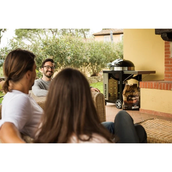Die neue Version des PRO22K-CART ist mit einem optimierten Lüftungssystem ausgestattet. Mit dem PRO22K-CART-2 hat Napoleon einen Holzkohlegrill entwickelt, der jeden Grillfan begeistert. Das klassische Design und das geradlinige Wagen-Design wird durch den schwarzen Look des Kugelgrills und durch wenige Akzente aus Edelstahl unterstrichen. Wie bei den Gasgrills setzt Napoleon auch beim Holzkohlegrill PRO22K darauf, dass sich Qualität, Hochwertigkeit und Ausstattung auszahlen. Die Garkammer, bestehend aus Kessel und Deckel, ist mit extra dickem Platinum-Porzellan beschichtet, was den Grill sehr widerstandsfähig macht. Zur Ausstattung des PRO22K gehören das ACCU-PROBE™-Thermometer im Deckel und ein Grillrost aus Gusseisen. Für ein leichteres Handling klappbar, lässt es ein herrliches Branding entstehen. Der dreifach höhenverstellbare, klappbare WAVE™ Gussgrillrost (Ø 57 cm) sorgt für eine gleichmäßig verteilte und lang anhaltende Hitze. Dank des drehbaren Deckels mit Eckscharnier kann der Grillmeister sicher über der Grillfläche hantieren. Ein großer Aschebehälter aus Stahl und der robuste Kohlerost sind weitere Annehmlichkeiten.Art.-Nr.: 1404247