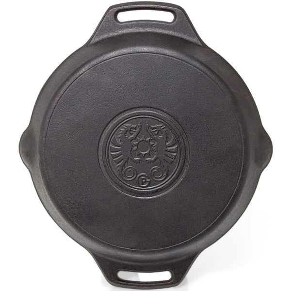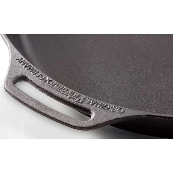 Die gusseiserne Petromax Feuerpfanne fp40h gehört mit ihrer exzellenten Wärmespeicherung zur Ausstattung jeder Küche. Ob in der Draußen-Küche über dem offenen Feuer gekocht wird oder auf dem Herd zuhause, man kann die Feuerpfanne sowohl auf herkömmlichen Herdplatten, auf Gasflammen, im Backofen als auch im Freien auf einer Kochstelle, über einem Lagerfeuer oder auf einem passenden Grill verwenden. Das Gusseisen mit seiner ausgezeichneten Wärmeverteilung und -speicherung ist dank der vorbehandelten Oberfläche (seasoned finish) sofort einsatzbereit und leicht zu pflegen.Art.-Nr.: 1532895