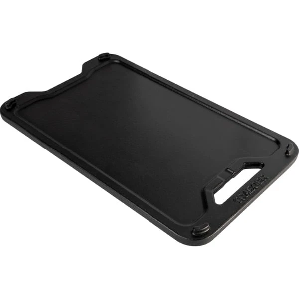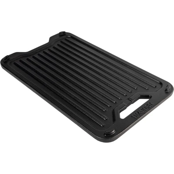 Die passgenaue wendbare Gusseisen-Grillplatte BAC696 von Traeger eignet sich perfekt für die 2023er Pelletgrills Timberline und Timberline XL mit ModiFIRE Grillrosten. Die gerippte Seite lässt das Fett ablaufen und eignet sich hervorragend zum Anbraten von Steaks, zum Grillen von Hähnchen, Burgern oder Speck. Die glatte Seite, auch Plancha genannt, ist ideal zum Backen von Pfannkuchen, Rösti oder gegrilltem Käse. Der einzigartige Geschmack des Guss-Geschirrs entsteht durch die konstante Rundumwärme. Dank der vorbehandelten Oberfläche ist die robuste, pflegeleichte Gusseisen-Platte sofort verwendbar. Mit ModiFIRE kann man die Kochfläche des Grills schnell verändern, ohne dazu den Rost entfernen zu müssen. Sämtliches ModiFIRE-Zubehör passt sicher auf die ModiFIRE-kompatiblen Grills und kann in Sekundenschnelle hinzugefügt oder entfernt werden.Art.-Nr.: 100018255