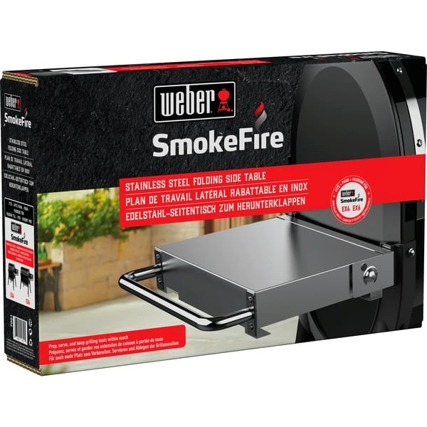 Der SmokeFire EX4 Seitentisch ist passend für die Weber Holzpelletgrills SmokeFire EX4 und EX6. Er ist hoch- und runterklappbar und verfügt über einen integrierten Flaschenöffner, sowie ein Fach zum Verstauen des Schneidebretts. Der SmokeFire Seitentisch ist auch passend für die Abdeckhaube 7192.Art.-Nr.: 1694222